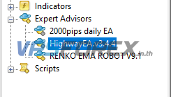 วางไฟล์เสร็จก็ให้เราปิด MT4 แล้วเปิดขึ้นมาใหม่ครับแล้ว EA ก็จะอยู่ใน List รายการของเรา