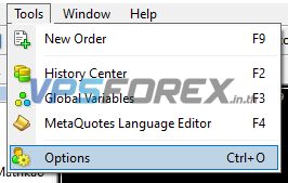 จากนั้นอย่าพึ่งรีบนำ EA เข้ากราฟนะครับ เราต้องไป Allow ให้ EA ไปหาข่าวให้ได้ก่อน โดยไปที่ Tools>Options