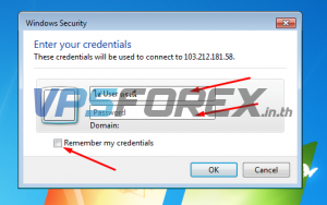 หากไม่ต้องการใส่รหัสผ่านในครั้งหน้าให้ทำการติกเครื่องหมายถูกหน้า Remember my credentials แต่ต้องเฉพาะเครื่องที่เราไว้ใจได้เท่านั้นนะครับ