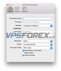 Connaction name = ชื่อการของเชื่อมต่อที่เราต้องการตั้ง เช่น VPS FOREX เป็นต้น