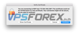 โปรแกรมจะถามถึงความปลอดภัยในการเชื่อมต่อให้เรากด Continue ไปต่อได้เลยครับ